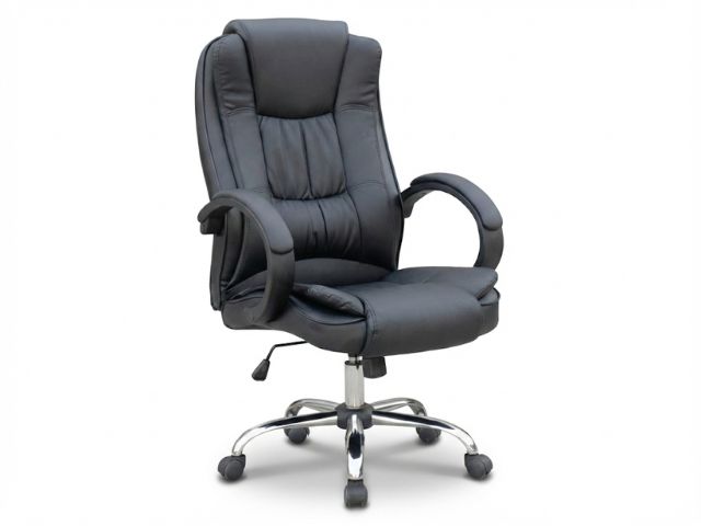 Los apoyabrazos en acero cromado aportan un brillo sofisticado que realza cualquier despacho.